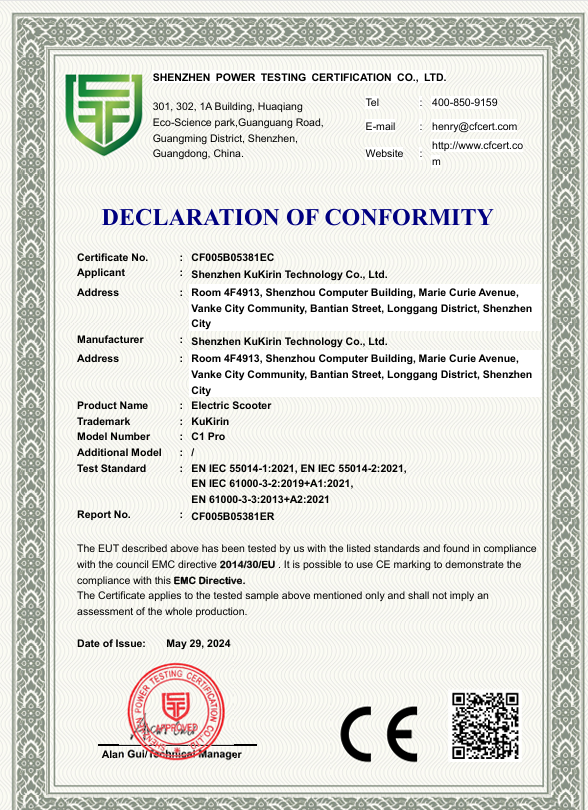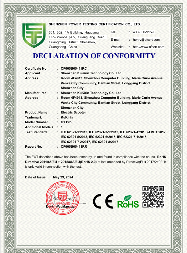 KuKirin C1 Pro is powered by a new generation of power lithium battery with high capacity, safer and more durable, 26Ah configuration, which provides the scooter with sufficient energy source.